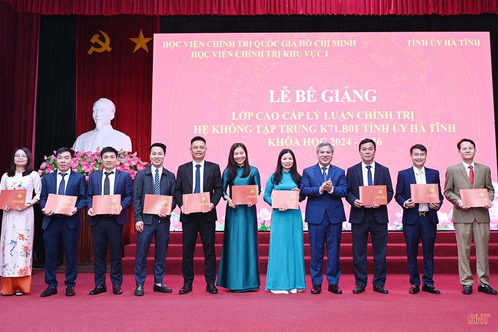 Sáng 6/1, Học viện Chính trị Khu vực I (Học viện Chính trị Quốc gia Hồ Chí Minh) phối hợp với Tỉnh ủy Hà Tĩnh tổ chức lễ bế giảng lớp cao cấp lý luận chính trị hệ không tập trung K71.B01 tỉnh Hà Tĩnh, khóa học 2024 - 2026.