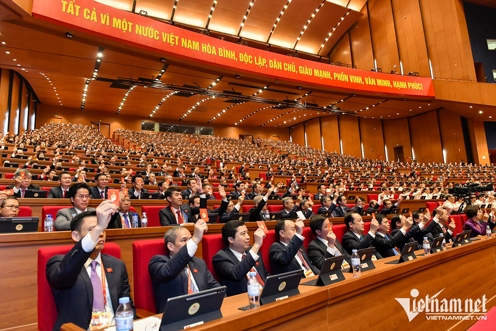 Đại biểu dự Đại hội XIV của Đảng dùng thẻ đảng viên để biểu quyết. Ảnh: Phạm Hải