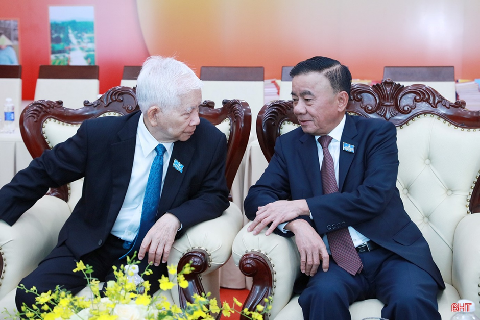 Đồng chí Trương Tấn Sang – nguyên Ủy viên Bộ Chính trị, nguyên Chủ tịch nước; đồng chí Nguyễn Sinh Hùng – nguyên Ủy viên Bộ Chính trị, nguyên Chủ tịch Quốc hội.