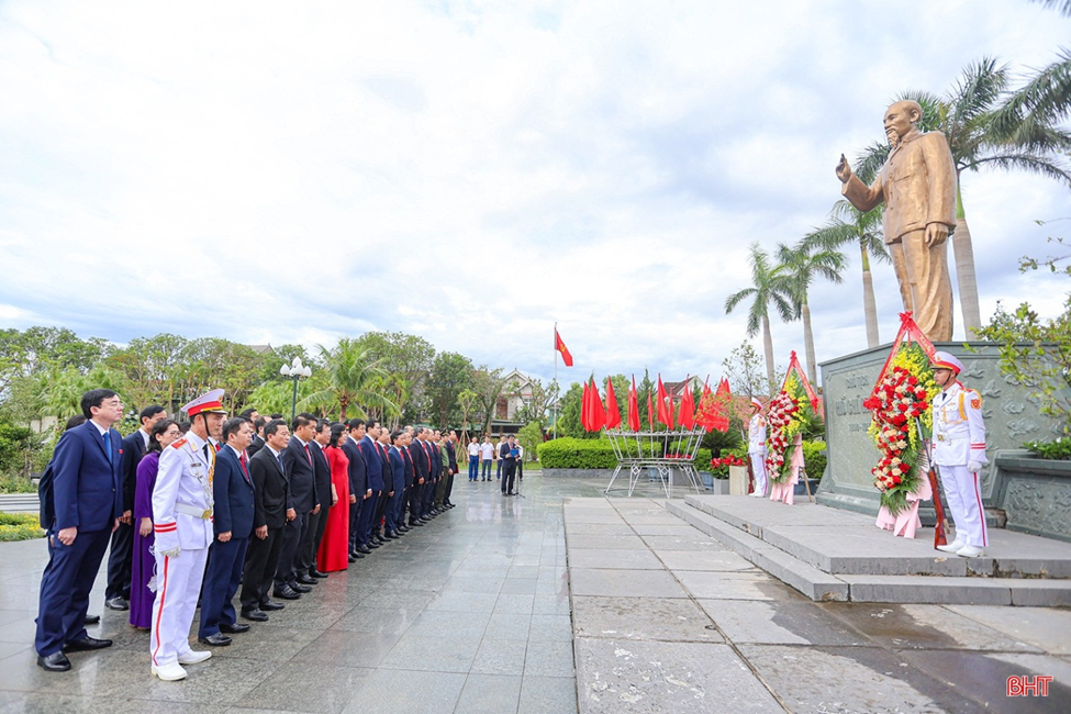 Trước khi bước vào Đại hội, đại biểu đã đến dâng hương, dâng hoa và báo công với Chủ tịch Hồ Chí Minh tại Khu lưu niệm Bác Hồ về thăm Hà Tĩnh tại phường Thành Sen.