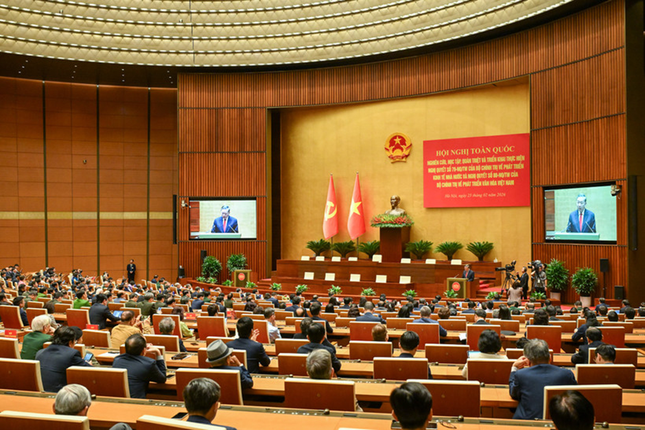 Phát biểu tại hội nghị, Tổng Bí thư Tô Lâm khẳng định, bên cạnh những nghị quyết đã ban hành trước đó, hai nghị quyết mới là sự bổ sung thêm những quyết sách lớn của Đảng, được hình thành trên cơ sở tổng kết sâu sắc thực tiễn và phát triển tư duy lý luận trong bối cảnh đất nước bước vào giai đoạn phát triển mới, nhằm đồng thời giải quyết hai yêu cầu có tính nền tảng là tăng cường “nội lực vật chất” và củng cố “nội lực tinh thần” quốc gia.