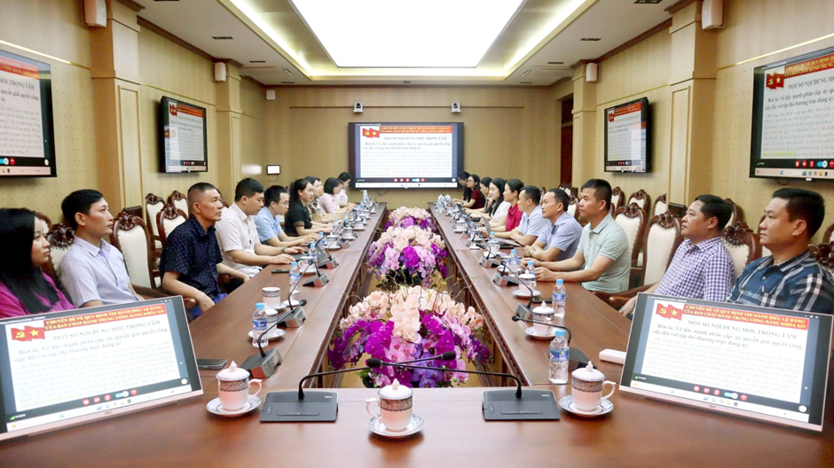 Tại điểm cầu Đảng bộ các cơ quan Đảng tỉnh, tham dự có lãnh đạo các ban xây dựng Đảng, Ủy ban Kiểm tra, Văn phòng Đảng ủy và cán bộ, đảng viên các cơ quan tham mưu, giúp việc. Hội nghị được kết nối tới 38 điểm cầu cơ sở với 1.144 cán bộ, đảng viên, công chức, viên chức và người lao động.