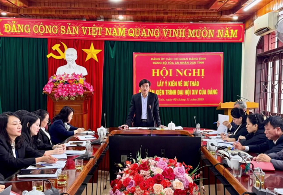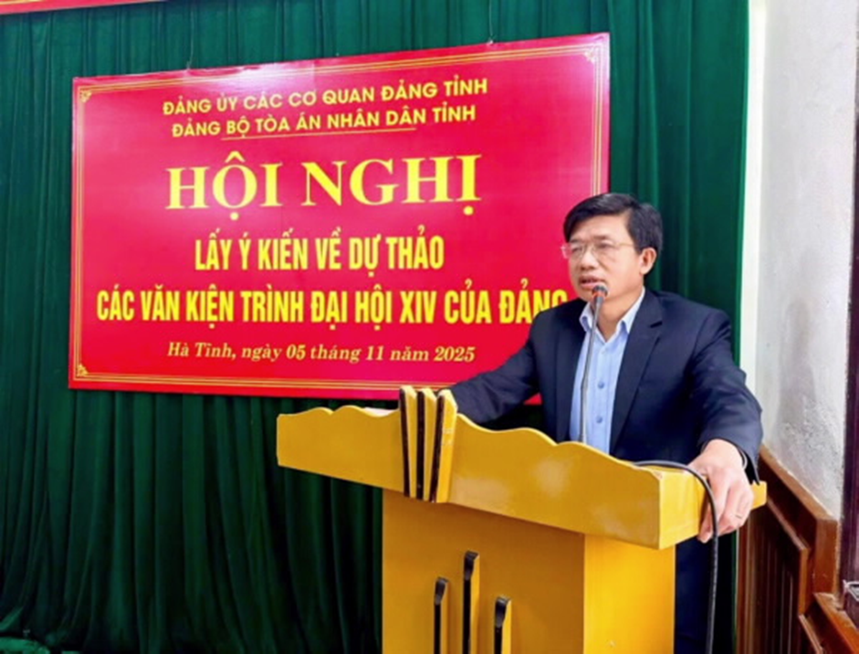 Hội nghị lấy ý kiến về dự thảo các văn kiện trình Đại hội XIV của Đảng thể hiện tinh thần trách nhiệm của các cán bộ, Đảng viên TAND hai cấp Hà Tĩnh về tầm vóc, ý nghĩa lịch sử của Đại hội XIV của Đảng.