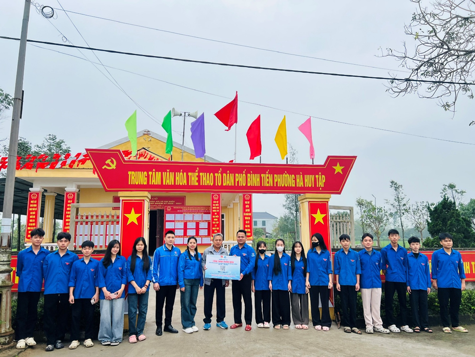 Qua đó, Đoàn cơ sở các cơ quan Đảng tỉnh đã tiến hành bàn giao công trình “Tuyến đường điện thanh niên” cho Tổ dân phố Liên Hương, phường Hà Huy Tập với tổng kinh phí hơn 9 triệu đồng. Công trình hệ thống đèn chiếu sáng nhằm góp phần đảm bảo an ninh trật tự, tạo điều kiện thuận lợi cho sinh hoạt, sản xuất của người dân khu vực phường.