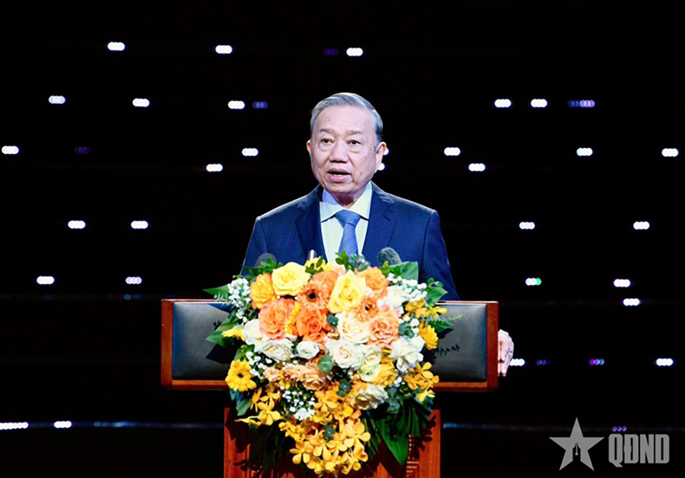 Tổng Bí thư Tô Lâm phát biểu chỉ đạo tại chương trình. Ảnh Báo Quân đội Nhân dân.