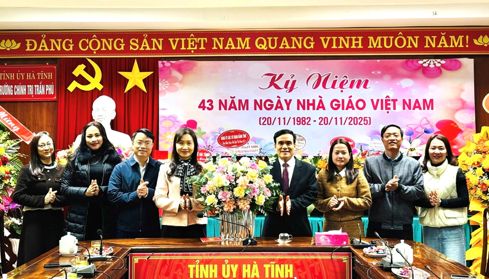 Nhân dịp Kỷ niệm 43 năm Ngày Nhà giáo Việt Nam (20/11/1982 - 20/11/2025), sáng ngày 19/11, đoàn công tác Đảng ủy các cơ quan Đảng tỉnh do đồng chí Nguyễn Thị Mai Thủy - Tỉnh ủy viên, Phó Bí thư Đảng ủy làm trưởng đoàn đã đến tặng hoa, chúc mừng Ban lãnh đạo, đội ngũ thầy cô giáo, cán bộ, nhân viên Sở Giáo dục và Đào tạo Hà Tĩnh và Trường Chính trị Trần Phú.