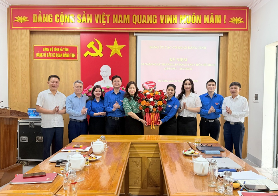 Nhân Kỷ niệm 95 năm Ngày thành lập Đoàn Thanh niên cộng sản Hồ Chí Minh (26/3/1931 - 26/3/2026), sáng ngày 24/3, Đảng ủy các cơ quan Đảng tỉnh tổ chức buổi gặp mặt, chúc mừng cán bộ, đoàn viên Đoàn Thanh niên các cơ quan Đảng tỉnh. Đồng chí Nguyễn Thị Mai Thủy - Tỉnh ủy viên, Phó Bí thư Chuyên trách Đảng ủy các cơ quan Đảng tỉnh chủ trì buổi lễ.