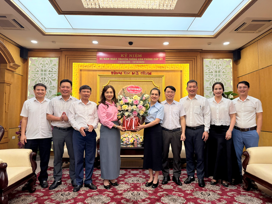 Nhân dịp Kỷ niệm 95 năm Ngày truyền thống các ban Đảng, Văn phòng cấp ủy và Hội Nông dân, 77 năm ngày truyền thống Ngành Kiểm tra Đảng, chiều nay (13/10), đoàn công tác Đảng ủy các cơ quan Đảng tỉnh do đồng chí Nguyễn Thị Mai Thủy - Tỉnh ủy viên, Phó Bí thư Đảng ủy làm Trưởng đoàn đã đến tặng hoa, chúc mừng tập thể lãnh đạo, cán bộ Ban Tổ chức, Ban Tuyên giáo và Dân vận, Ủy ban Kiểm tra, Văn phòng Tỉnh ủy và Hội Nông dân tỉnh.