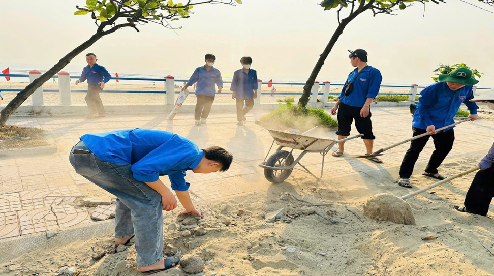 Để tạo cảnh quan sạch đẹp chào đón du khách, hơn 150 đồng chí đoàn viên, thanh niên đã tình nguyện làm sạch gần 01 km bãi biển, dọn dẹp vệ sinh môi trường, thu gom rác thải, xóa bỏ hoàn toàn các “điểm đen” về rác thải tự phát.