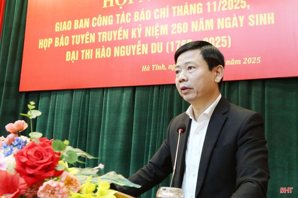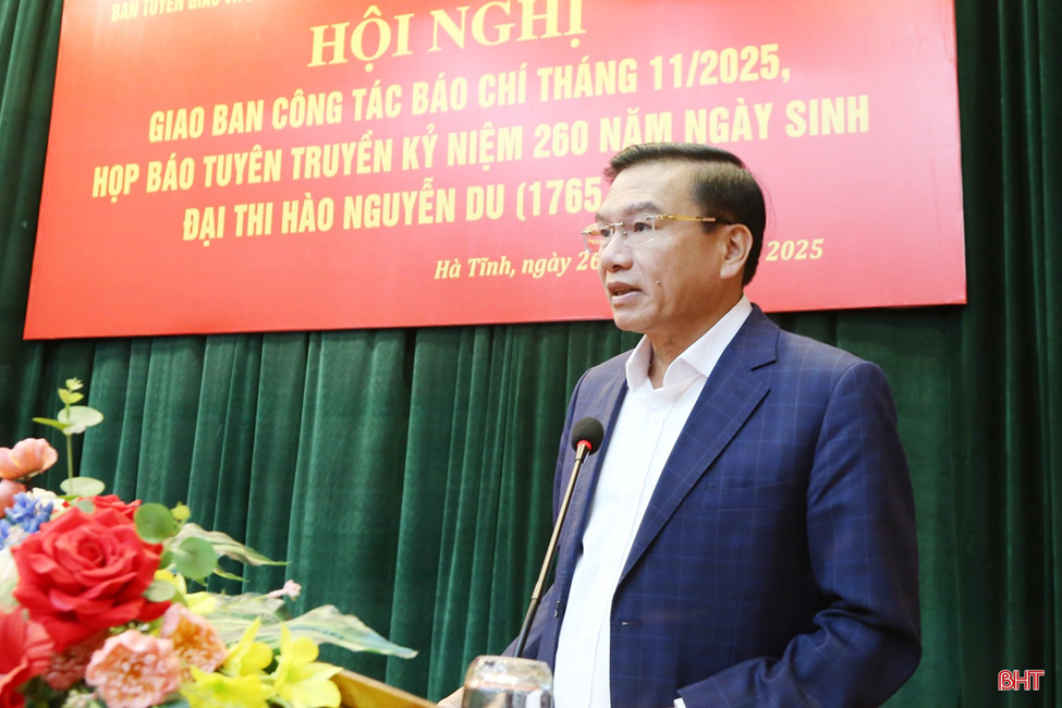 Về nhiệm vụ trong thời gian tới, Trưởng ban Tuyên giáo và Dân vận Tỉnh ủy nhấn mạnh, đối với kỷ niệm 260 năm Ngày sinh Đại thi hào Nguyễn Du, đây là sự kiện chính trị văn hóa có ý nghĩa quan trọng đối với tỉnh nên đề nghị các cơ quan báo chí tiếp tục bám sát các chỉ đạo, hướng dẫn của Ban Tuyên giáo và Dân vận Trung ương, Ban Tuyên giáo và Dân vận Tỉnh ủy, xây dựng kế hoạch tuyên truyền có trọng tâm, trọng điểm, bảo đảm tính liên tục, chuyên sâu.