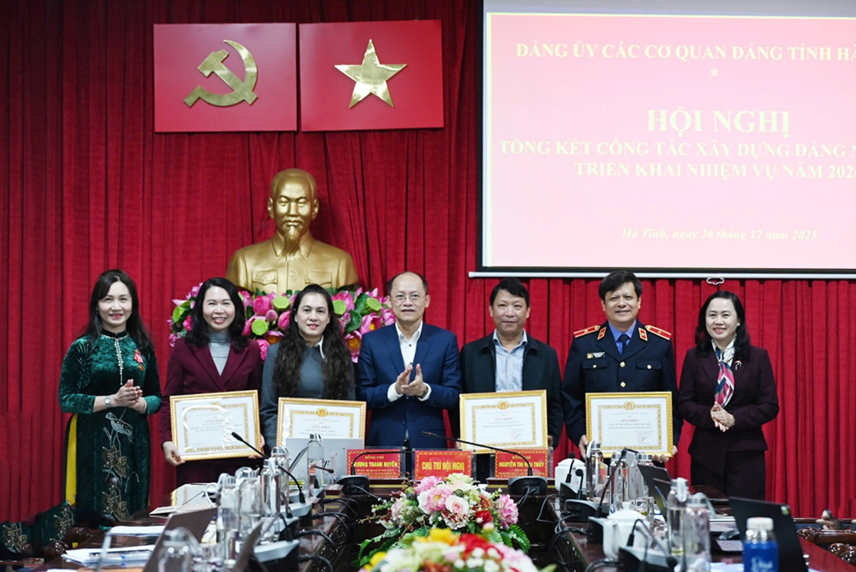 Thường trực Đảng ủy các cơ quan Đảng tỉnh tặng giấy khen cho các tập thể hoàn thành xuất sắc nhiệm vụ trong công tác xây dựng Đảng năm 2025